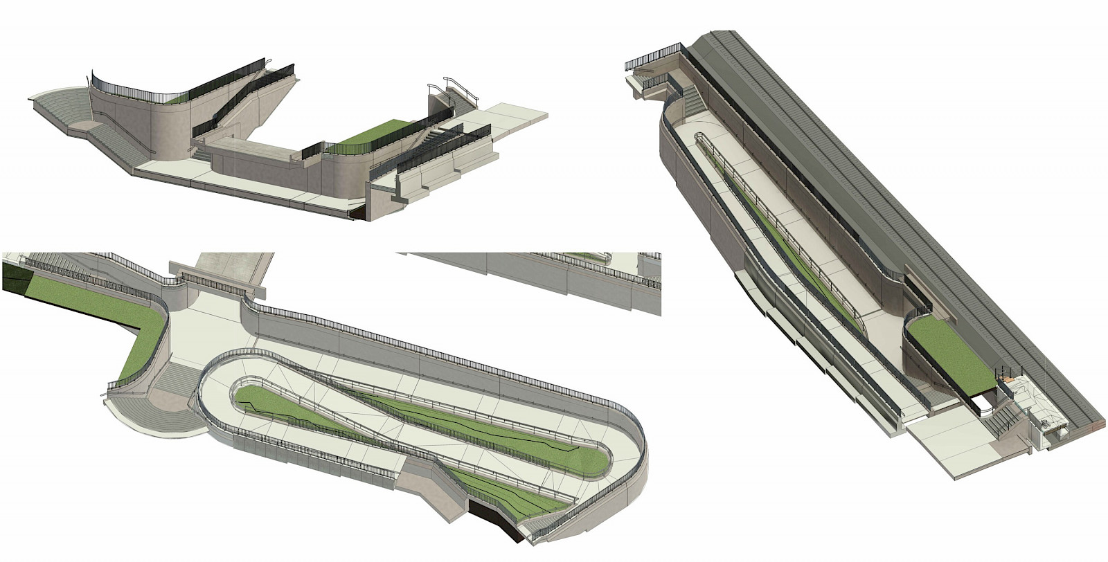3D-Visualisierung der zukünftigen Treppen- und Rampenanlage auf der Südseite der Personenunterführung. Die offene Gestaltung soll für eine hohe Aufenthaltsqualität sorgen. Quelle: DBInfraGo