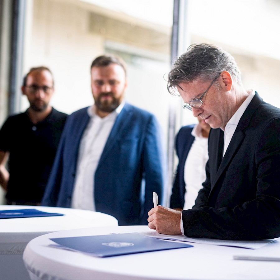 Am 1. September 2025 wurde ein bedeutender Schritt in Richtung klimafreundlicher Wärmeversorgung vollzogen: Bürgermeister Adnan Shaikh und Chad McCarthy, CTO und Mitbegründer des Rechenzentrumsbetreibers nLighten, unterzeichneten den Vertrag zur Nutzung von Abwärme für das Wiesenbad.