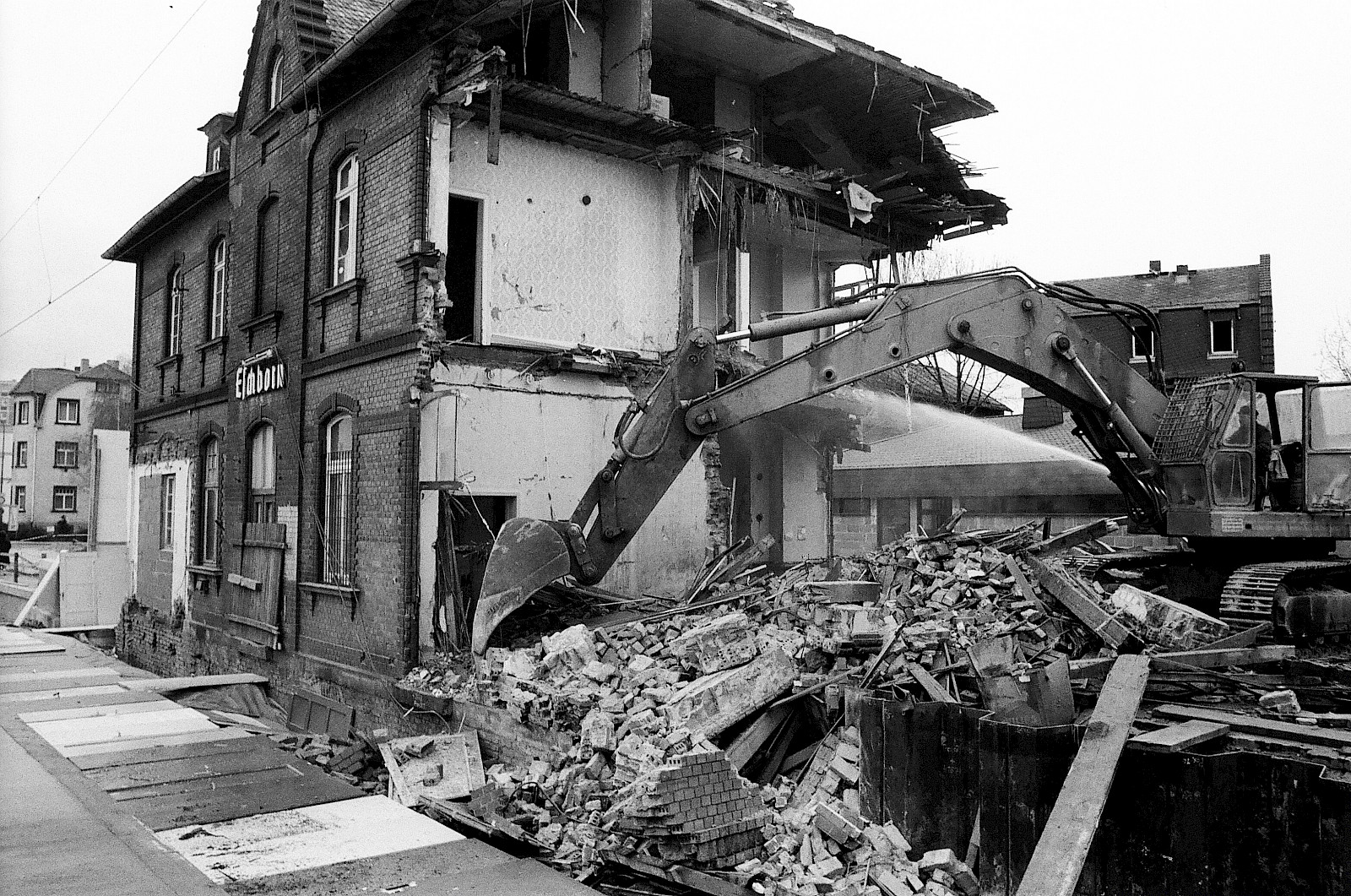 Immer mehr Menschen nutzen den Komfort der Bahn. Das Aufkommen an Personen und Waren am Eschborner Bahnhof steigt kontinuierlich. Das Bahnhofsgebäude ist zu klein geworden und muss einem größeren Neubau mit Wartehalle, Fahrkartenschalter und Raum für die Güterabfertigung weichen.