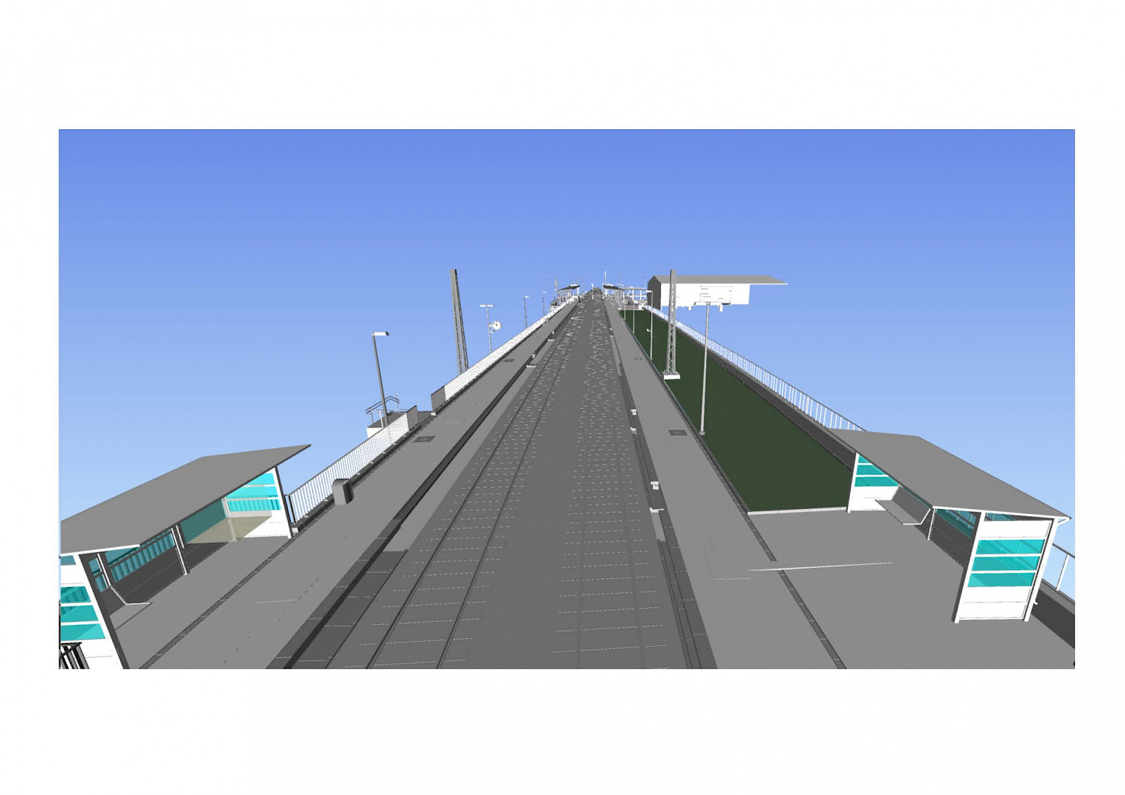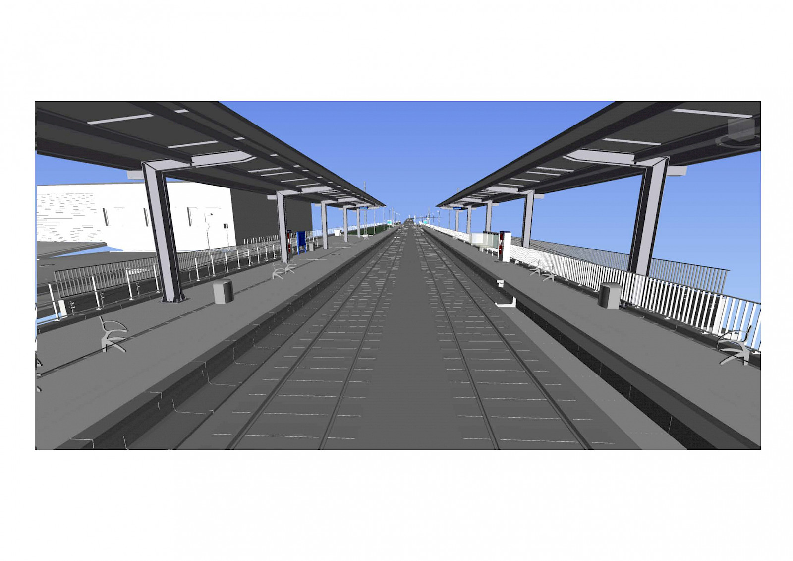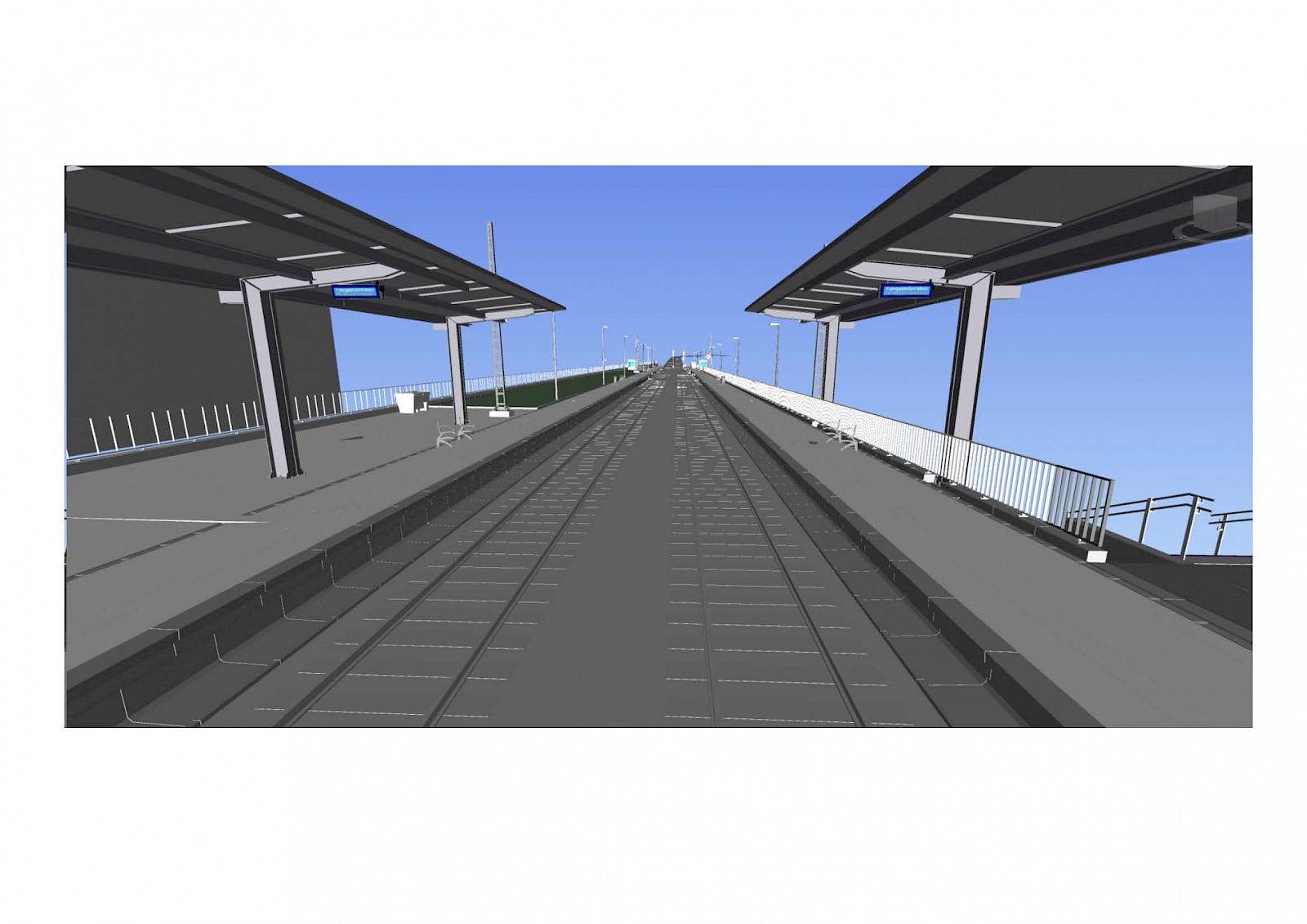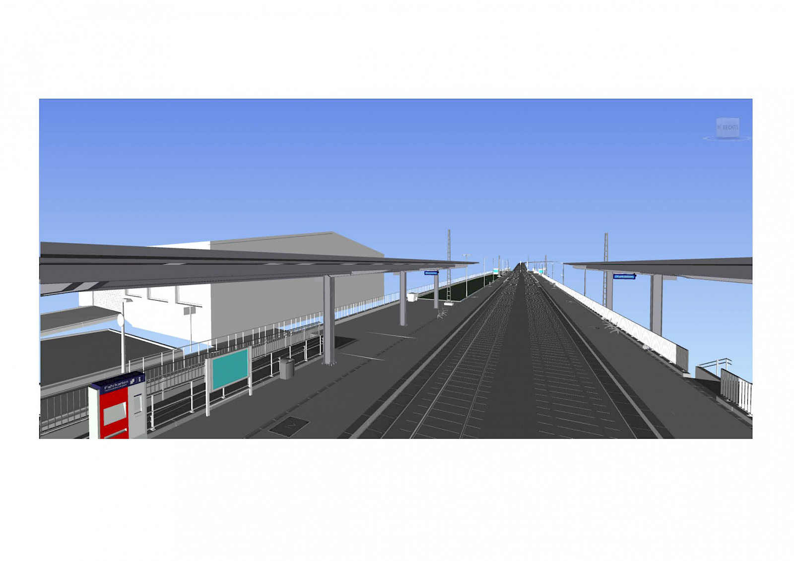 Der aktuelle Mittelbahnsteig wird zurückgebaut und durch zwei Außenbahnsteige ersetzt. Barrierefreie Rampen und Treppen erschließen die Bahnsteige. Neue Überdachungen und Beleuchtung, Sitzbänke und zwei Wetterschutzhäuschen gehören zur Bahnsteigausstattung, ebenso wie Fahrgastinformationenanzeigen.