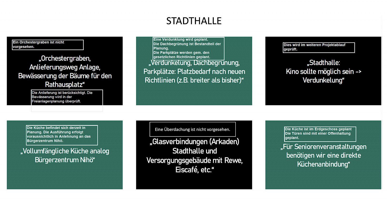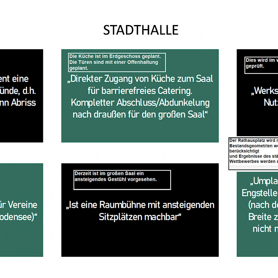 „Wir sind für alle Anregungen aus den Werkstattgesprächen sehr dankbar. Sie geben uns einen hilfreichen Einblick in die Vorstellungen und Bedürfnisse unterschiedlicher Interessensgruppen. Ebenso vermitteln sie die Ansprüche, die die Bürgerinnen und Bürger an die einzelnen Bestandteile des zukünftigen Gebäudekomplexes haben. Nun wird entschieden werden, welche Ideen und Wünsche umsetzbar sind und sich mit den bisherigen Planungen zur Gestaltung des Gebäudeensembles und der Umgebung vereinbaren lassen", so Bürgermeister Adnan Shaikh.