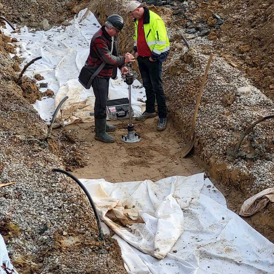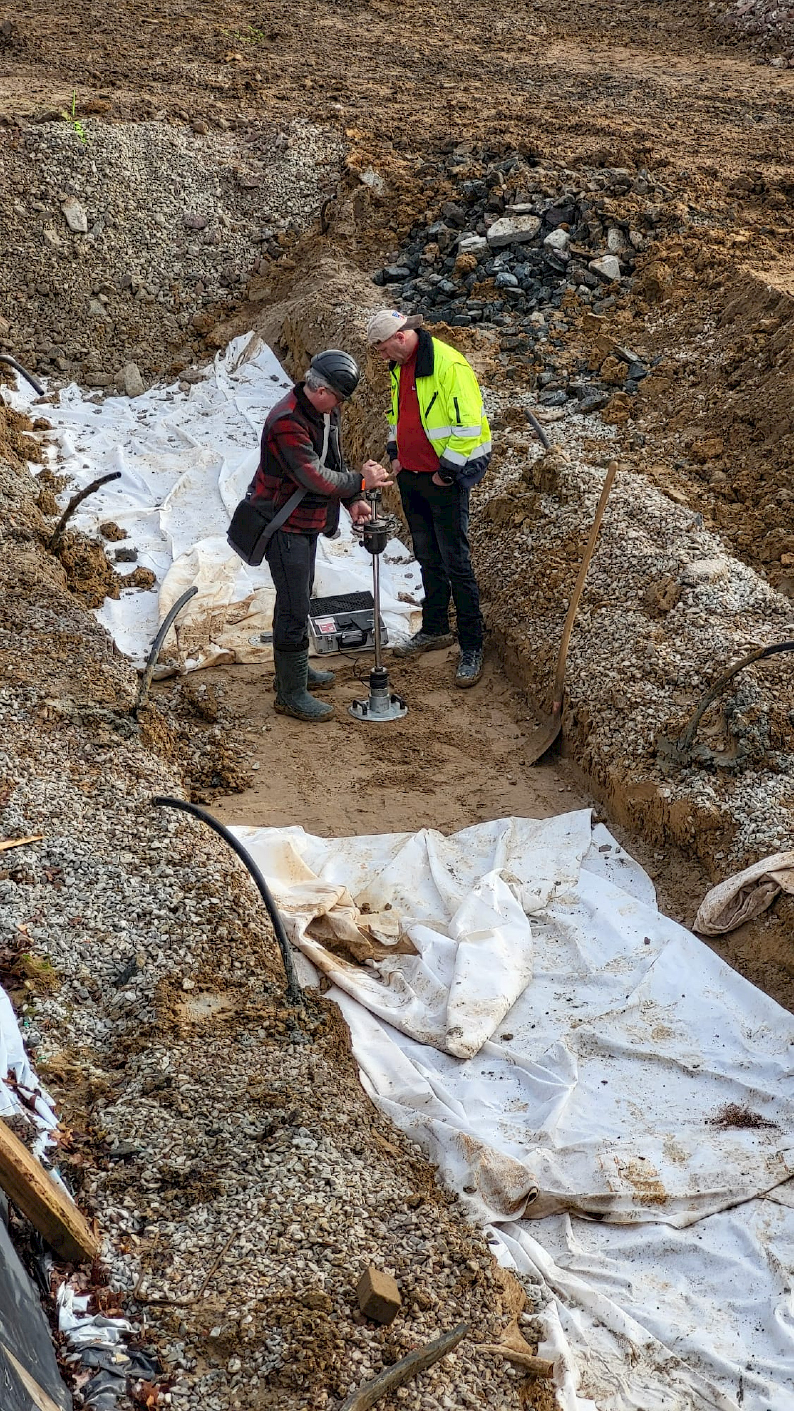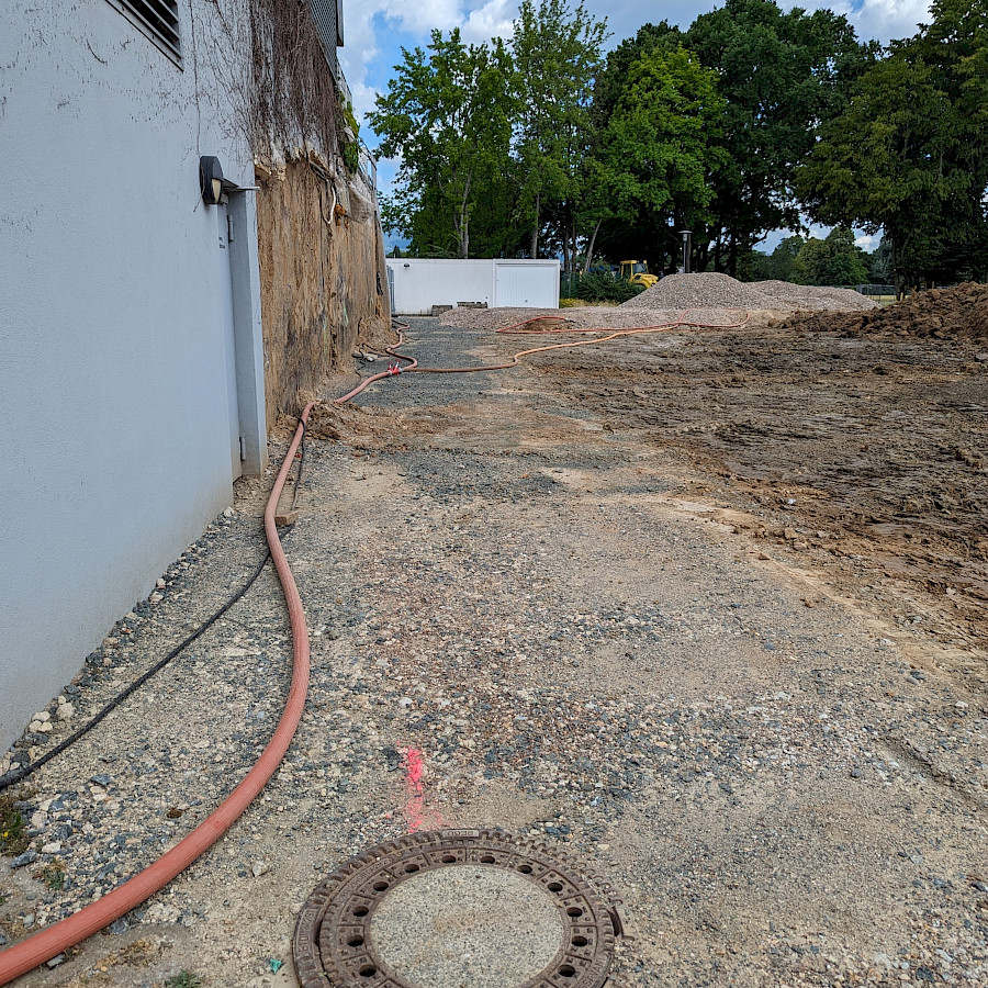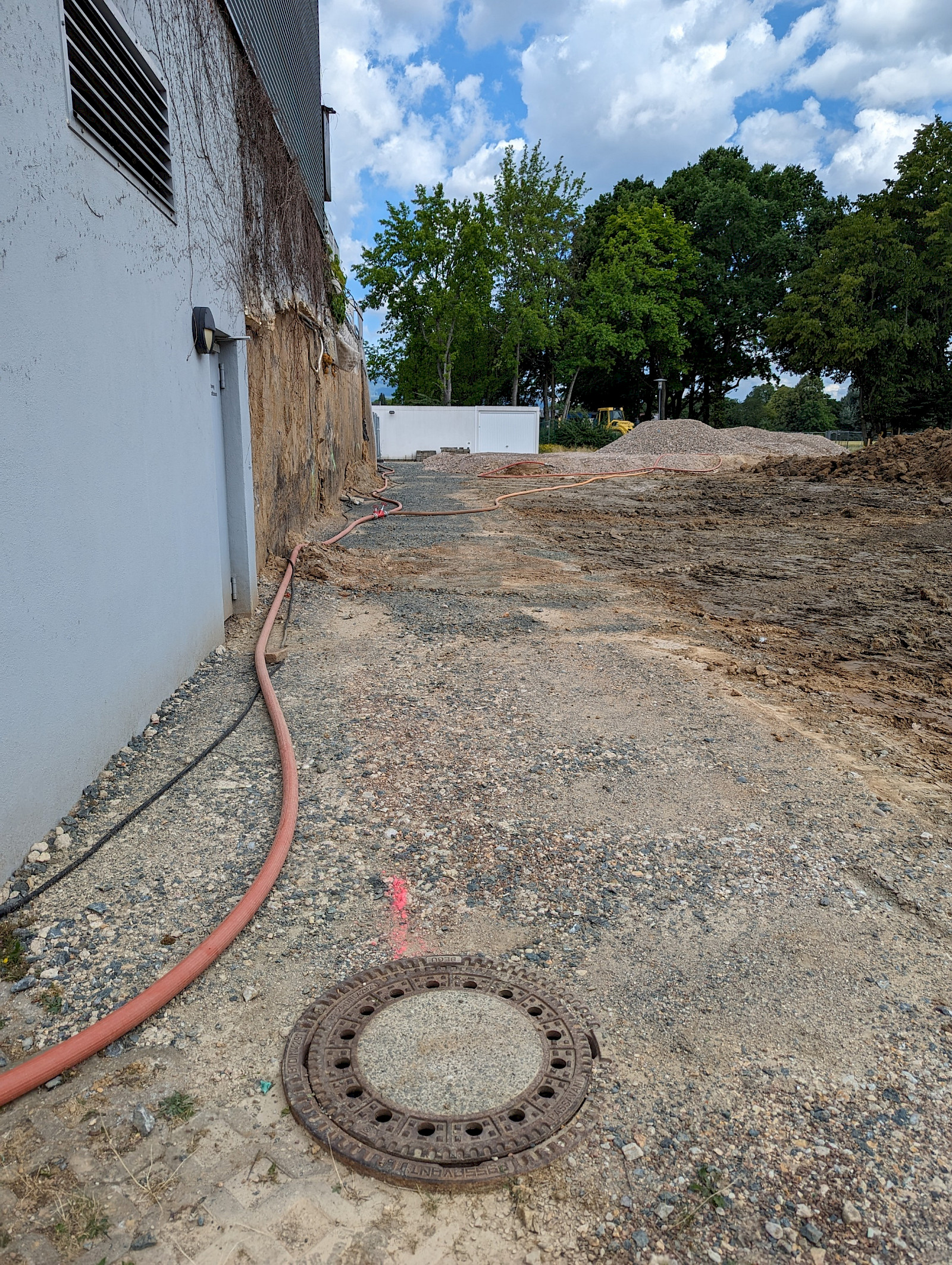 Im weiteren Verlauf sind Grundwasserprobleme aufgetreten, die bei vorhergehenden Untersuchungen nicht auffällig waren. Insbesondere die Niederschläge der vergangenen Monate führen in diesem Bereich zu einem erhöhten Grundwasserstand und vermehrt zu Schichtenwasser. Dies führte zu einem komplexen Problem, da es notwendig sein wird, das Grundwasser zu kontrollieren und abzusenken (geschlossene Wasserhaltung), um die Bauarbeiten durchführen zu können.