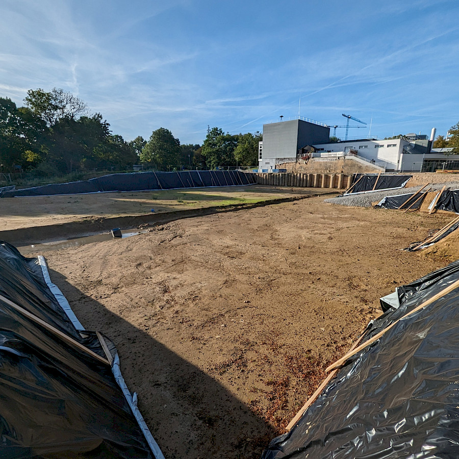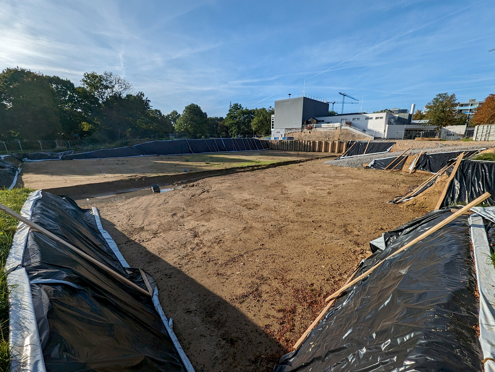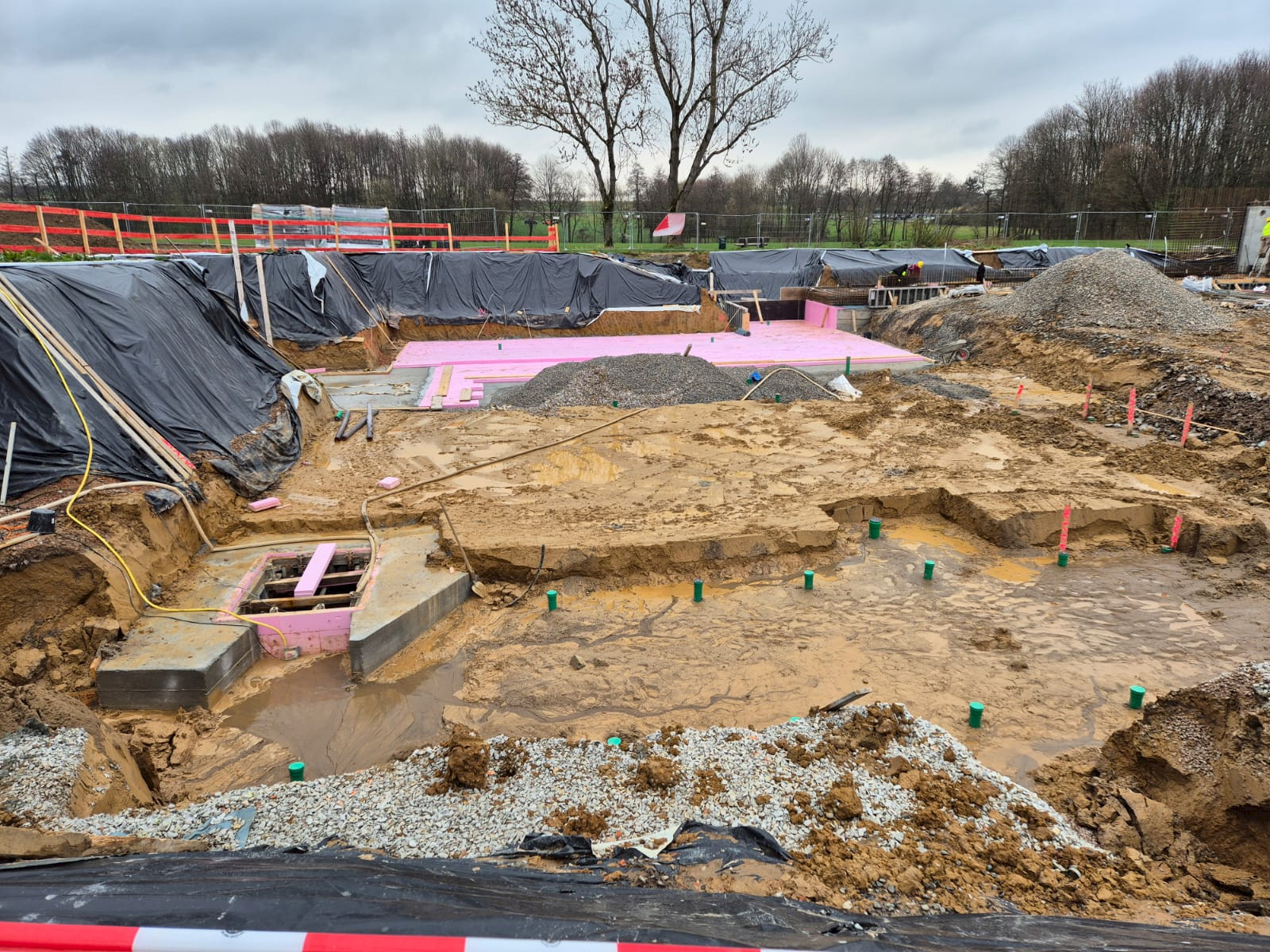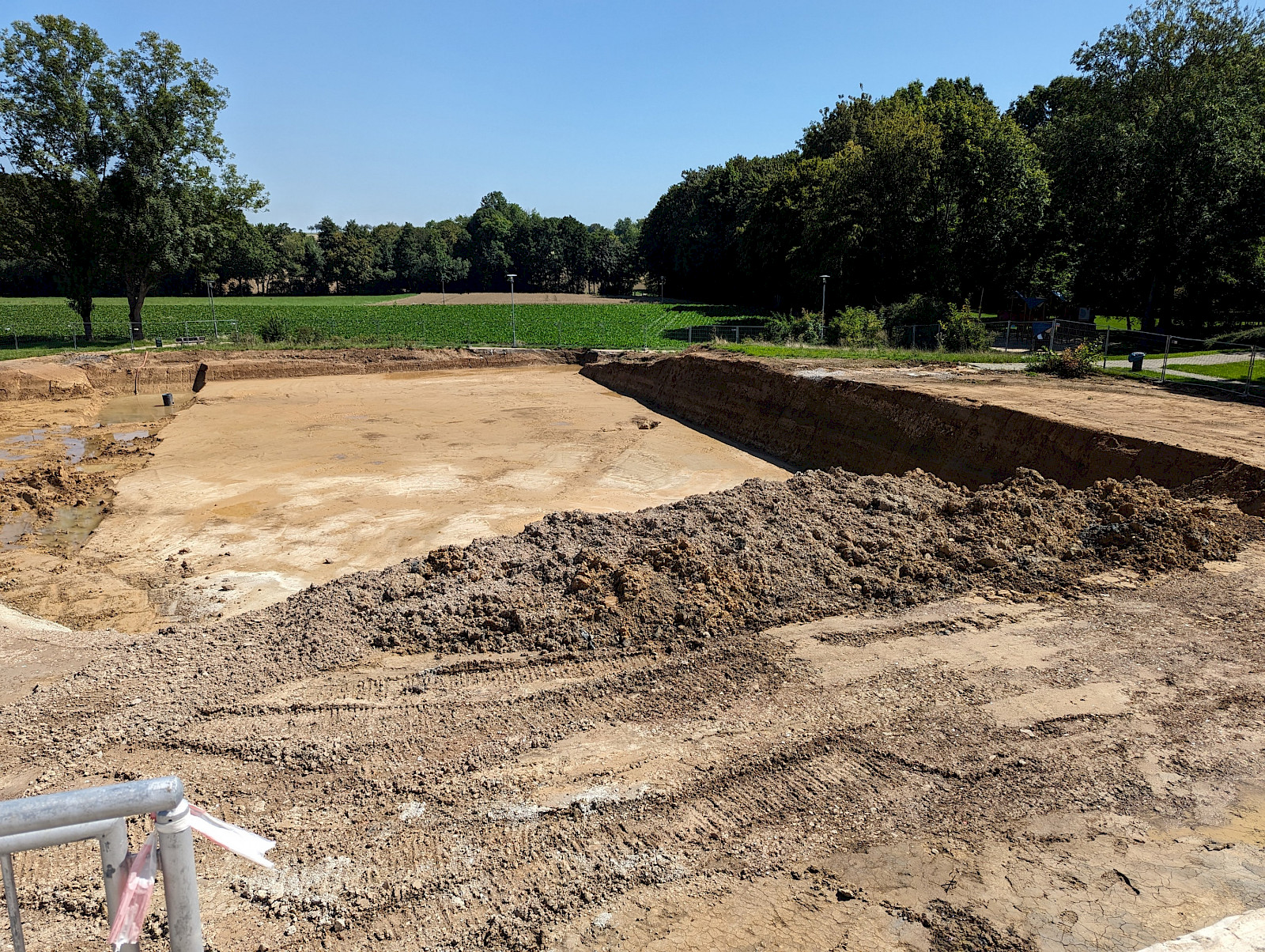 Die Baugrube für die neue Schwimmhalle ist in den letzten Wochen um einiges größer geworden. Langsam lassen sich die Dimensionen des Neubaus deutlicher erkennen.