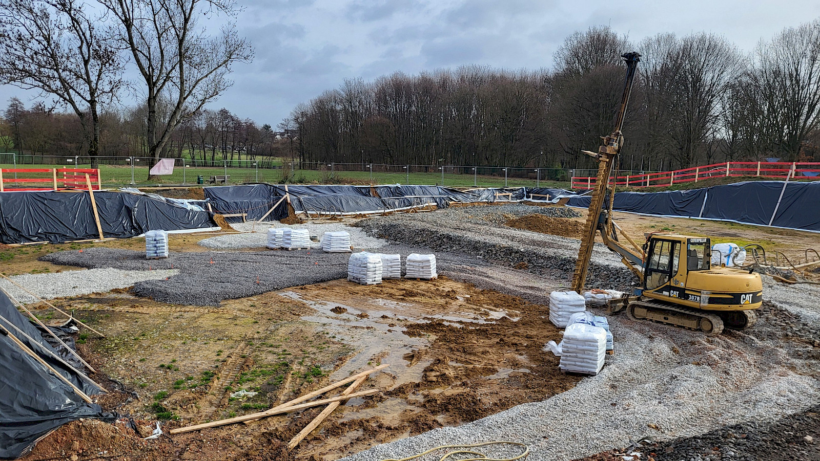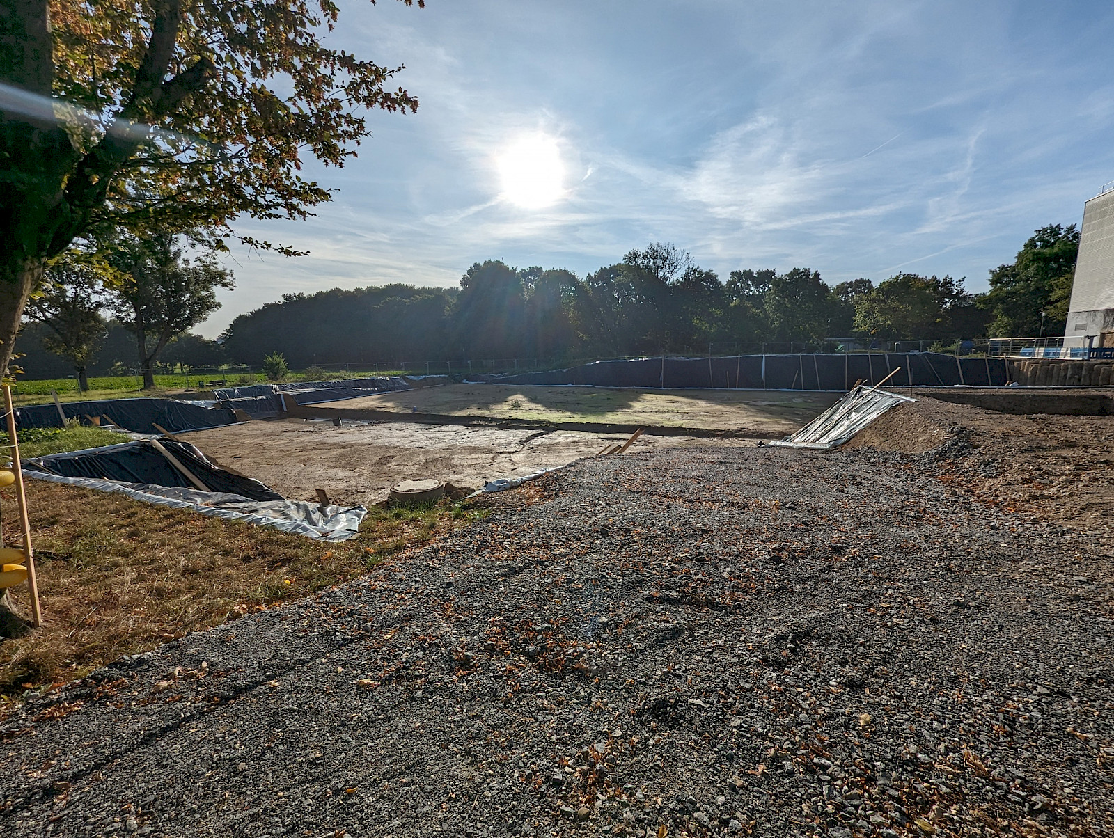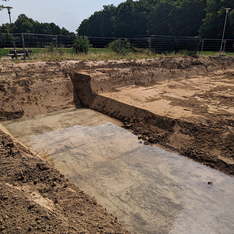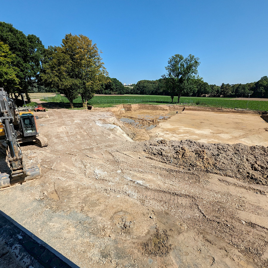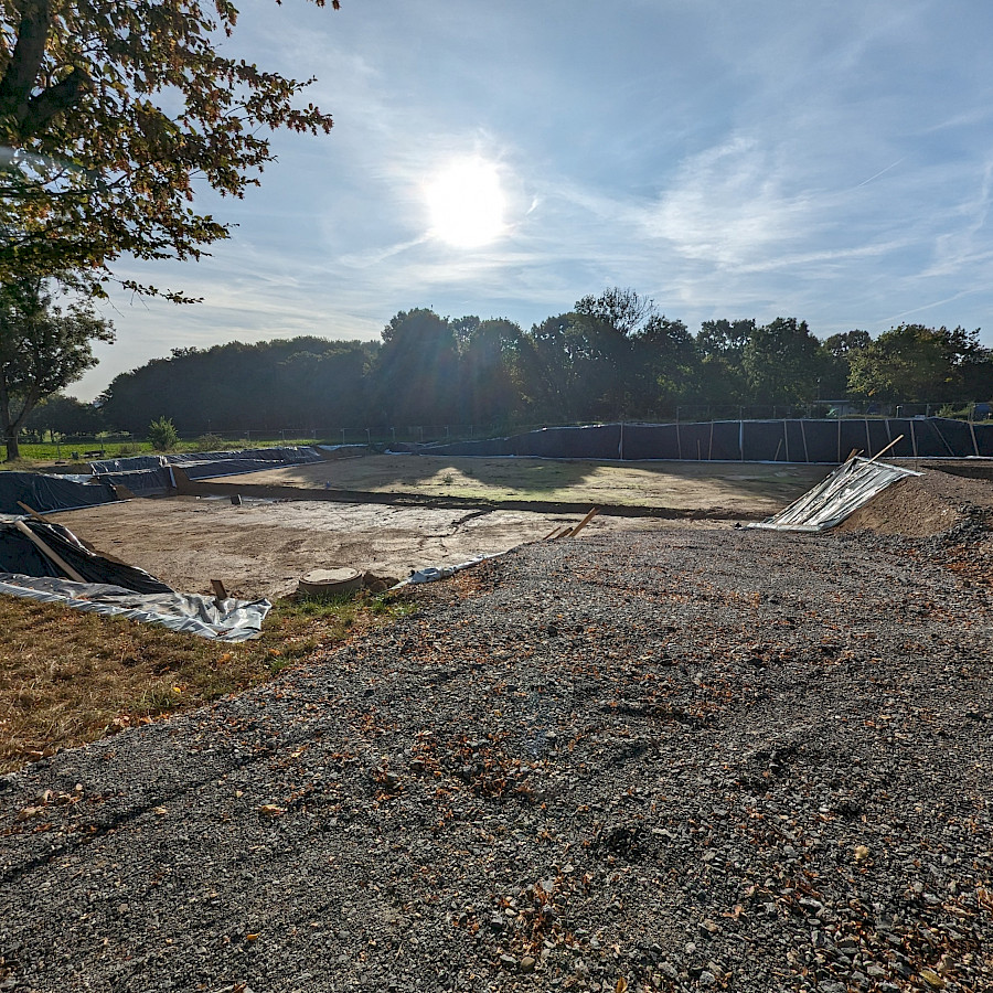 Die Baugrube für die neue Schwimmhalle ist in den letzten Wochen um einiges größer geworden. Langsam lassen sich die Dimensionen des Neubaus deutlicher erkennen.