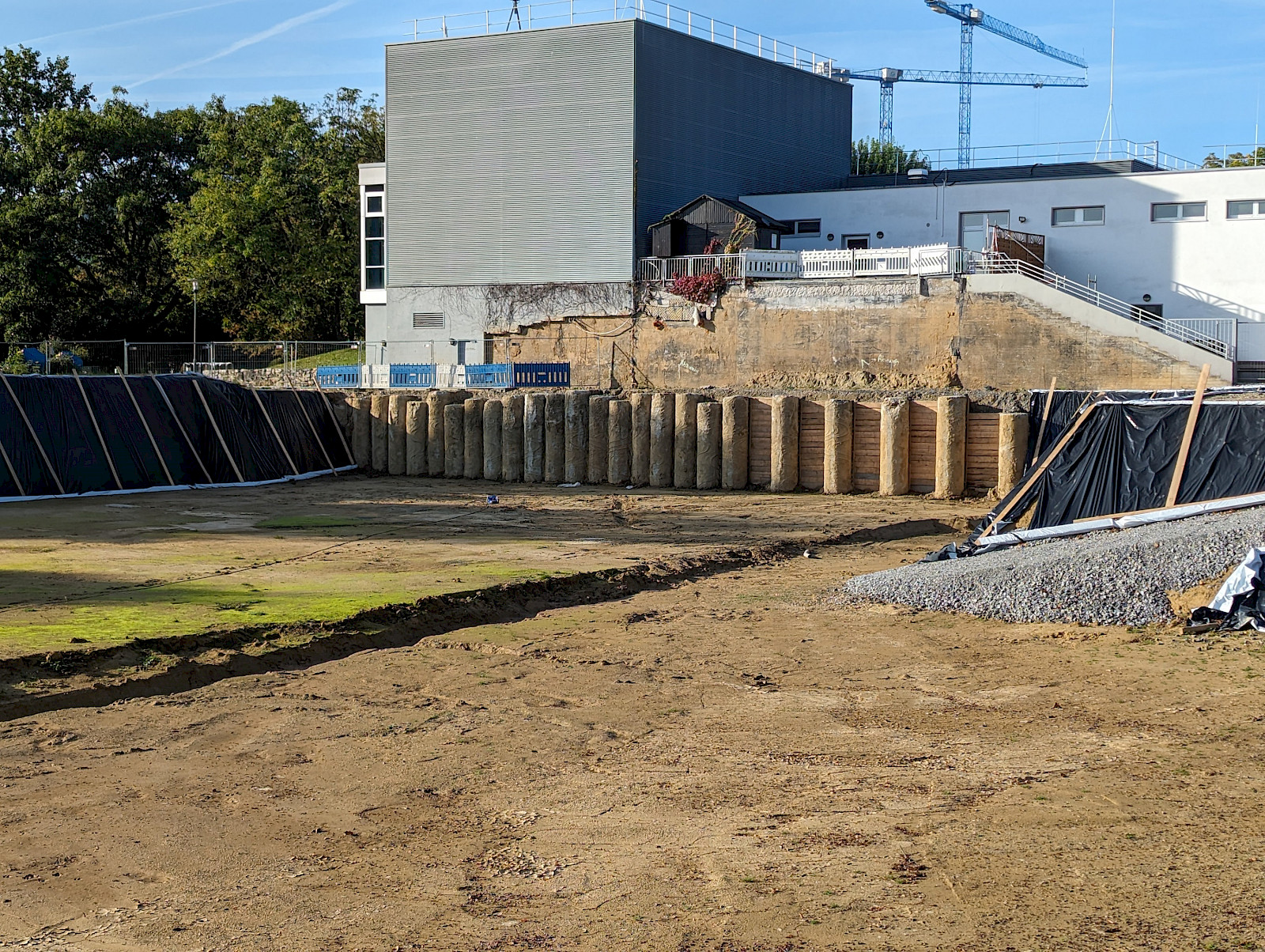 Momentan gibt es weitere Verzögerungen im Bauprojekt, die auf unerwartete Herausforderungen zurückzuführen sind. Während der Erdarbeiten erwies sich die Herstellung der notwendigen Bohrpfahlwand als zeitaufwendiger Prozess, der die ursprüngliche Zeitplanung beeinträchtigte. Die Verzögerungen in dieser Phase führten dazu, dass der Beginn der Rohbauarbeiten verschoben werden musste.