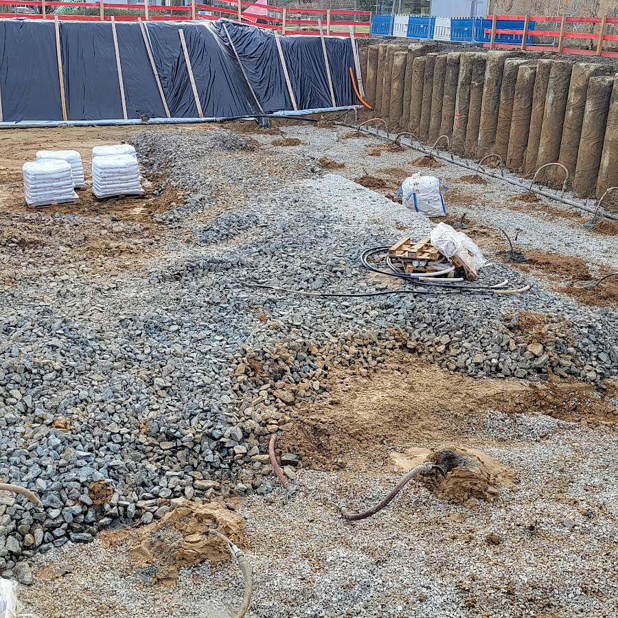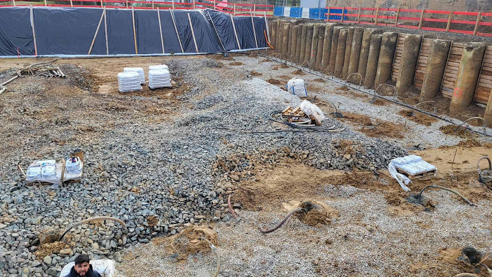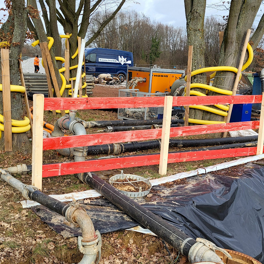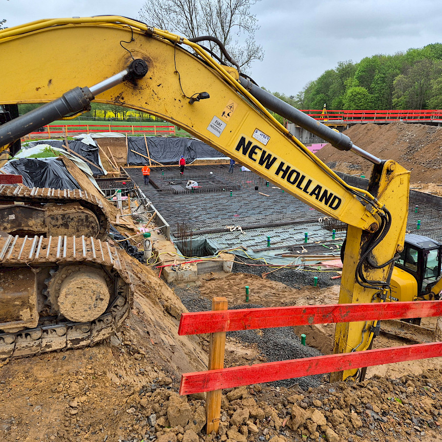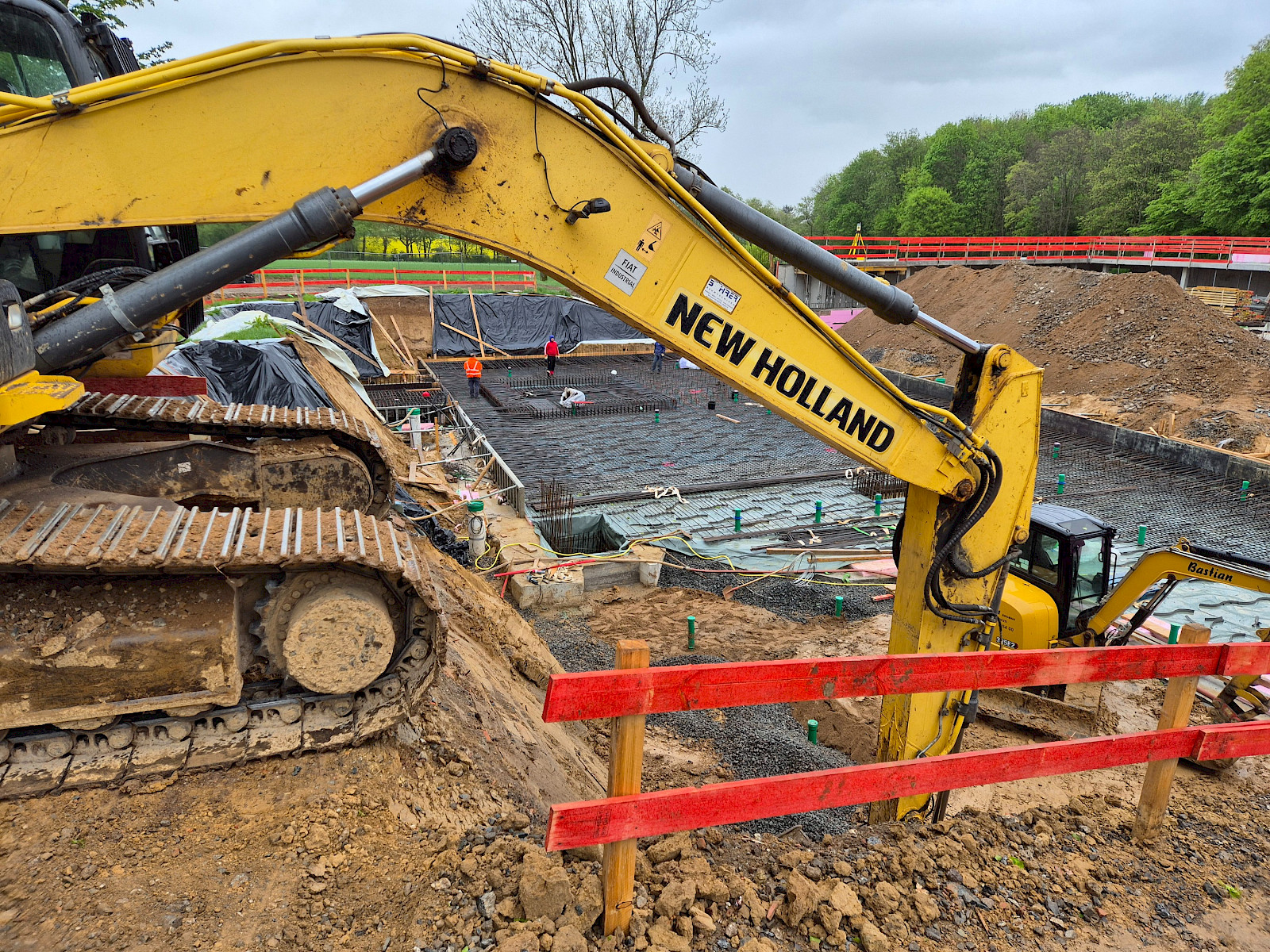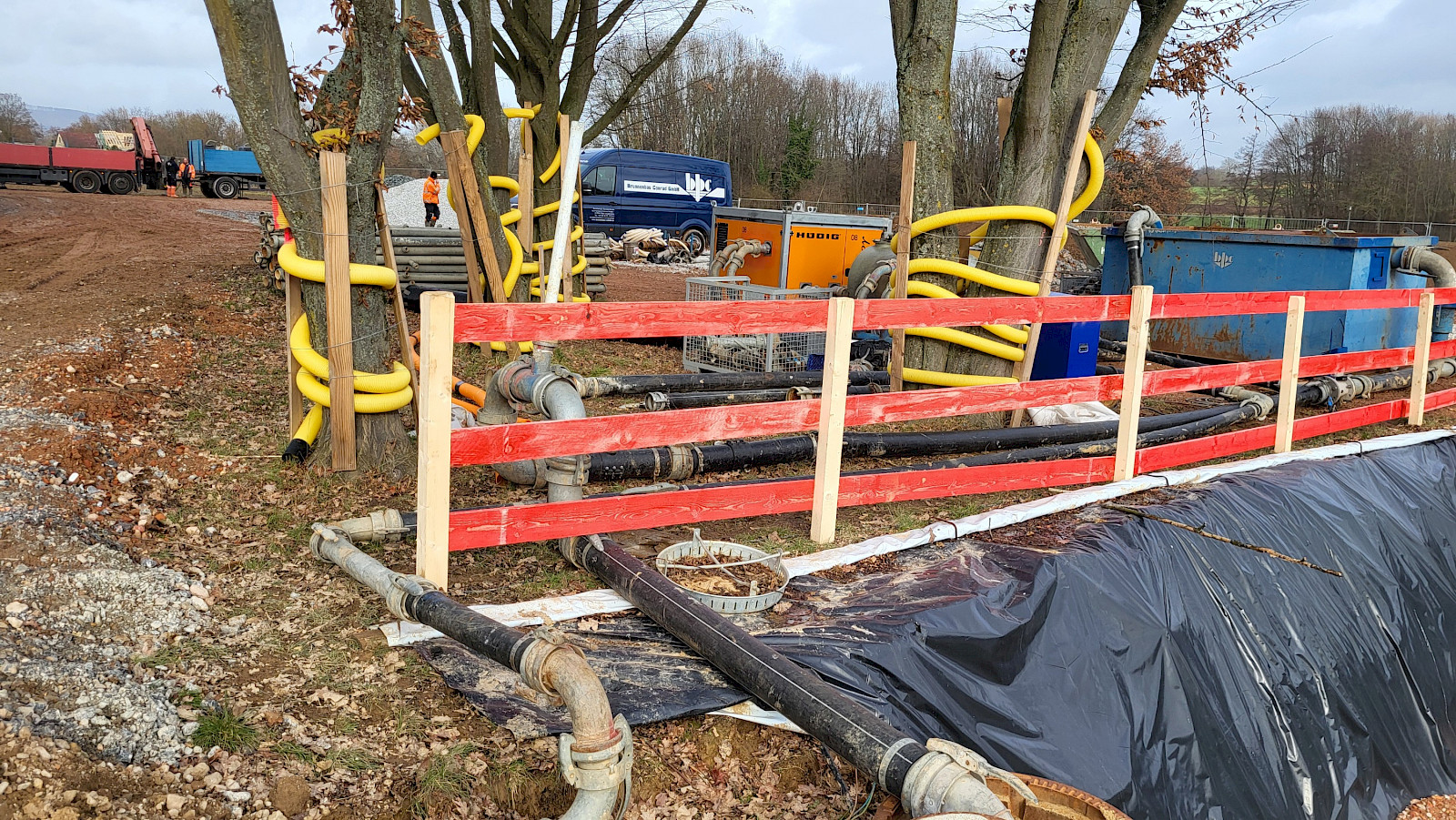 Die Grundwasserabsenkung und somit die Wasserhaltung funktioniert sehr gut – die Bauarbeiten sind voll im Gange.