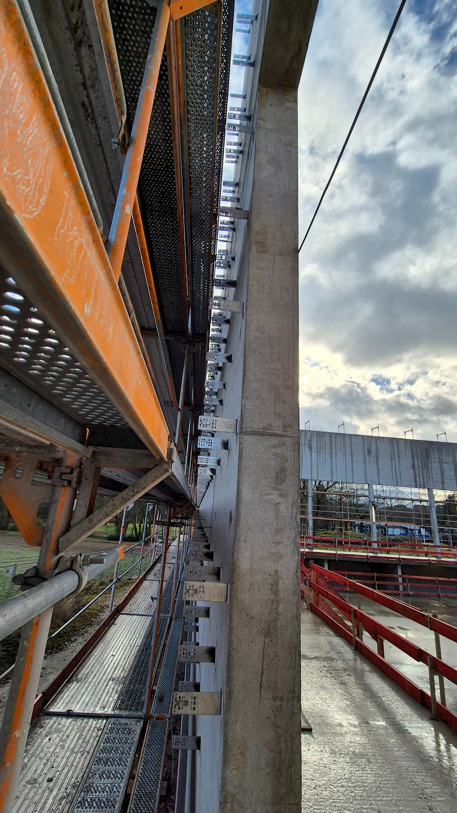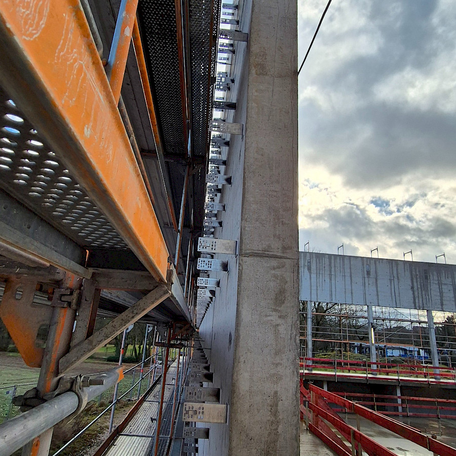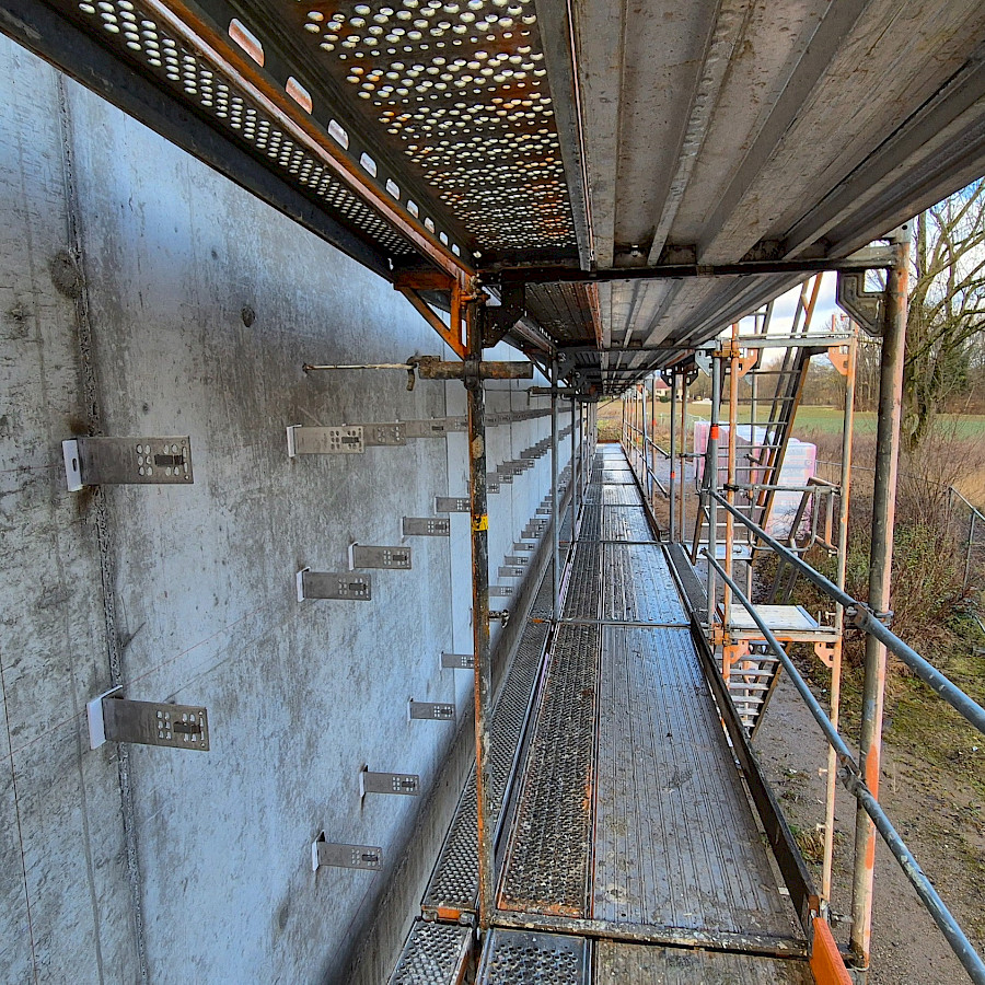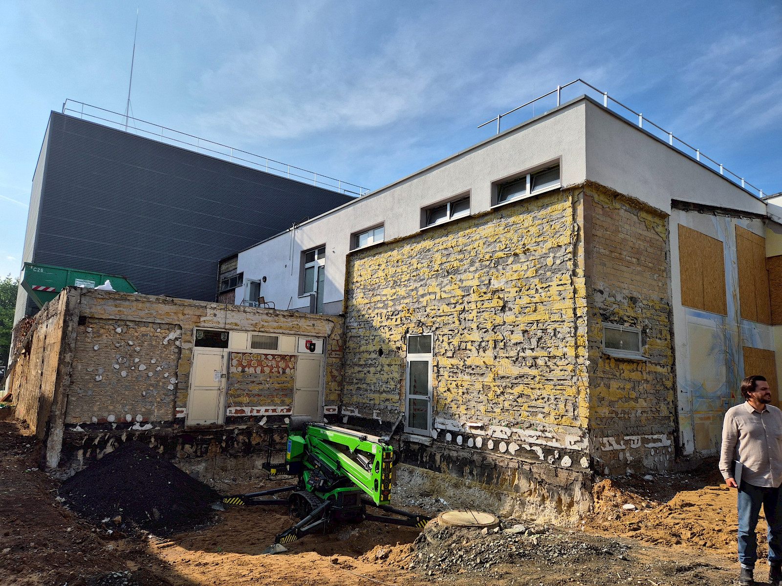 Im Dezember wurde die Notabdichtung der Flachdächer erfolgreich angebracht. Seit Januar laufen die Fassadenarbeiten auf Hochtouren. Die Unterkonstruktionen wurden bereits montiert und schaffen die Grundlage für die weitere Gestaltung der Außenhülle.