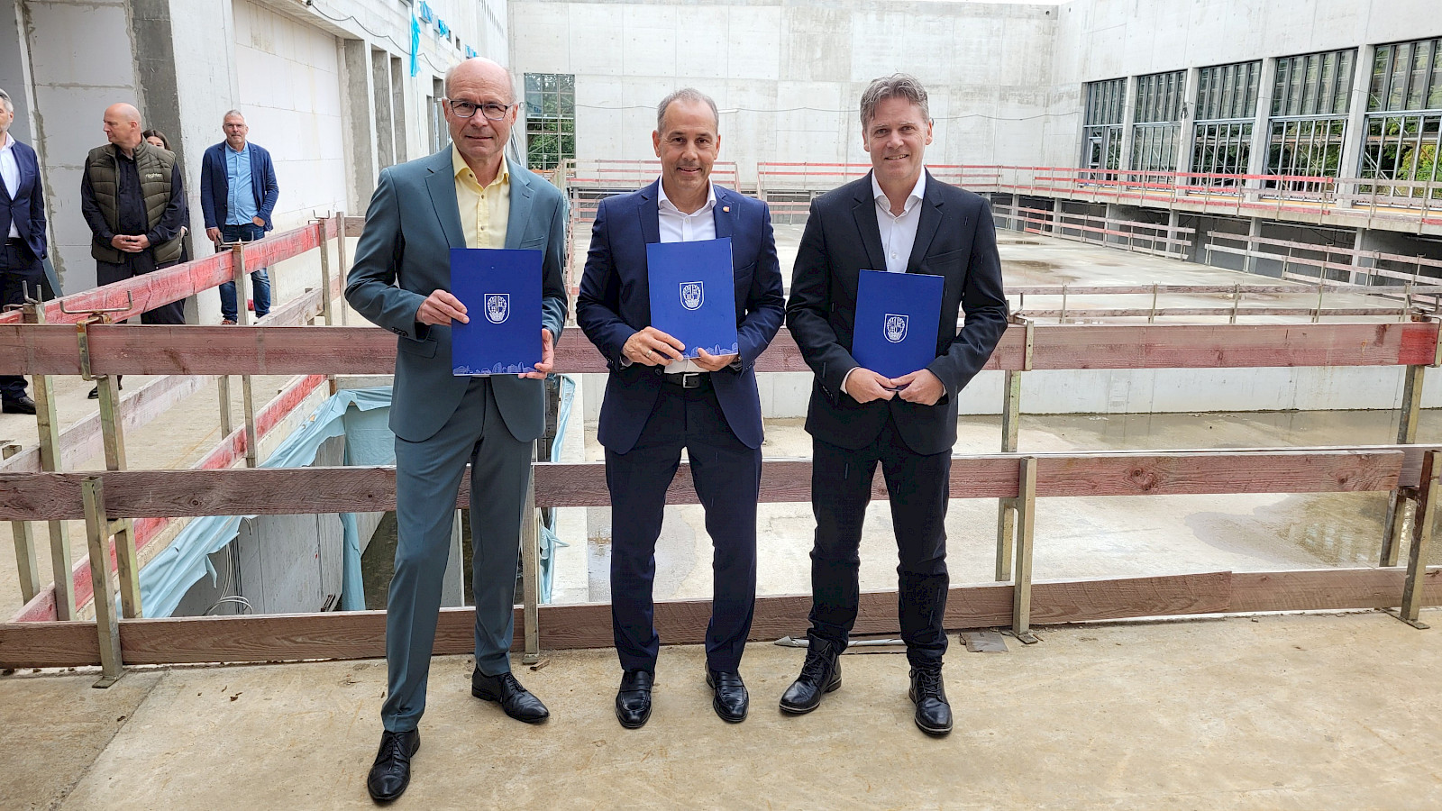 Am 1. September 2025 wurde ein bedeutender Schritt in Richtung klimafreundlicher Wärmeversorgung vollzogen: Bürgermeister Adnan Shaikh und Chad McCarthy, CTO und Mitbegründer des Rechenzentrumsbetreibers nLighten, unterzeichneten den Vertrag zur Nutzung von Abwärme für das Wiesenbad.